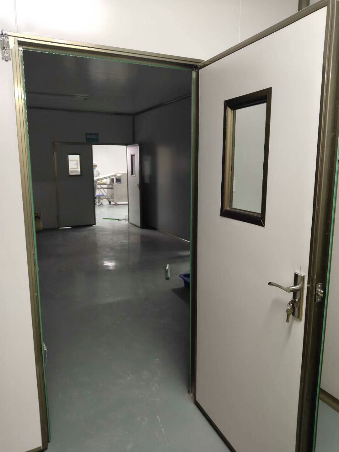 (2)兩個(gè)潔凈度級(jí)別相同又相通時(shí),應(yīng)保持由內(nèi)向外的氣流方向,在兩室之間保持略大于0的壓差。
