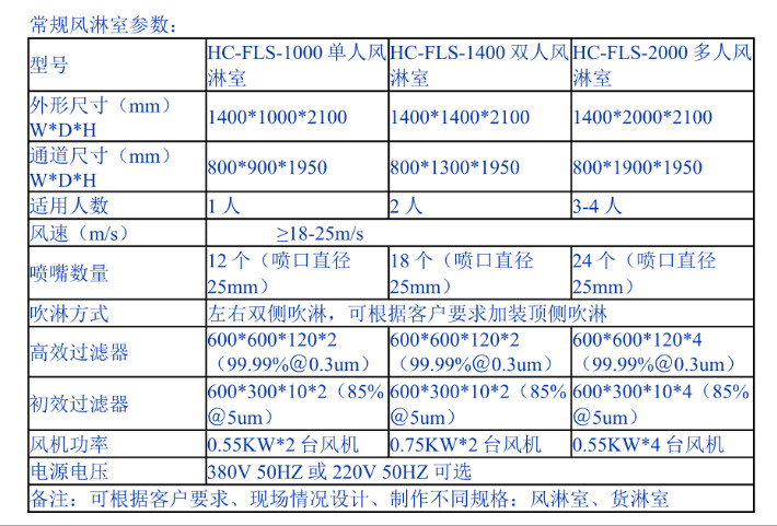普洱風淋室價格:潔凈風淋室規(guī)格尺寸及配置特點: